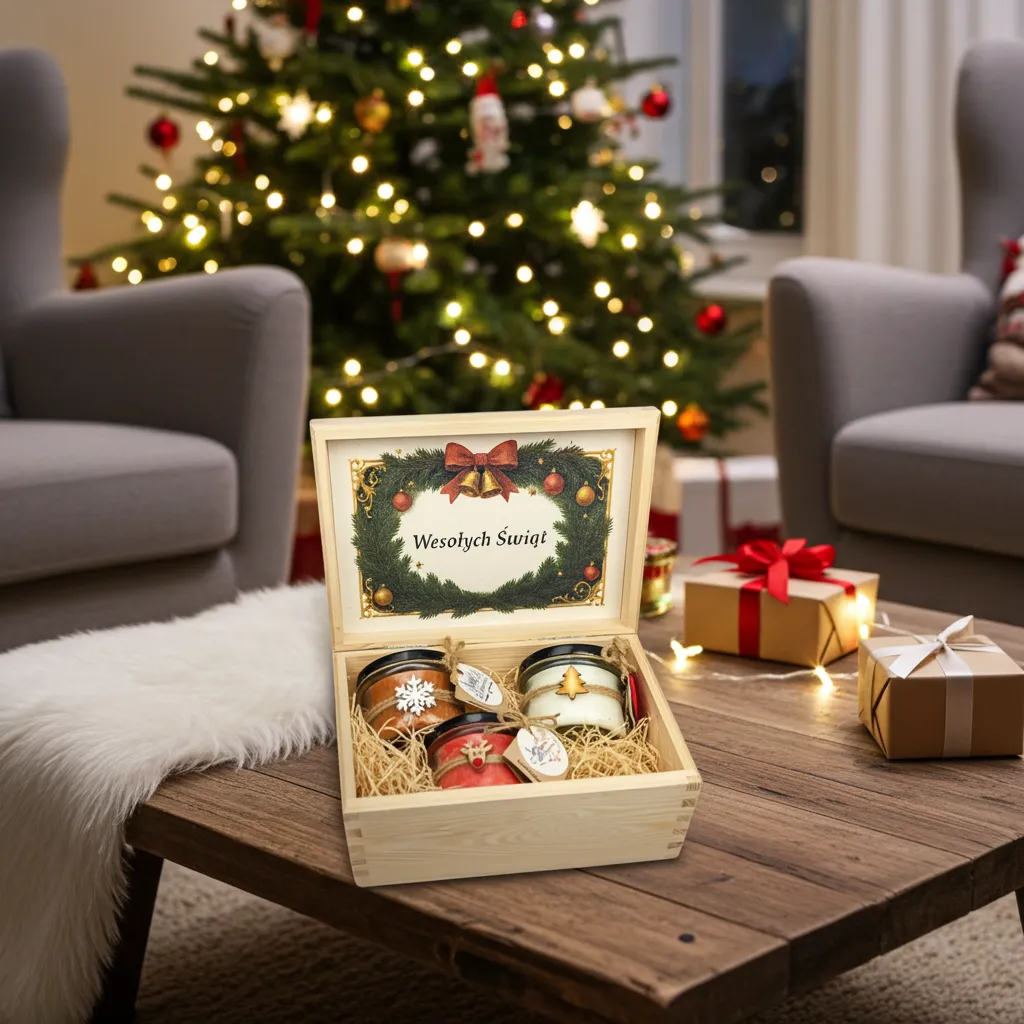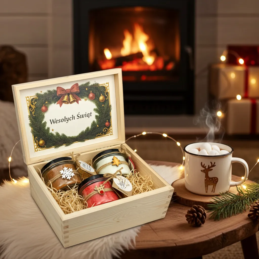 Wewnątrz wieka przygotowano miejsce na dedykację — standardową „Wesołych Świąt” lub personalizowaną (max 25 znaków, 1–2 linie). Dedykacja personalizowana — GRATIS!