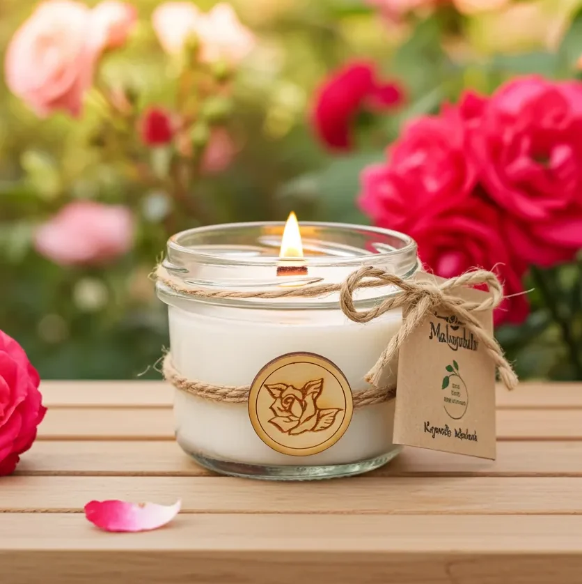 Zakochaj się w zmysłowym świecie zapachów dzięki MAKANDULO, dzięki świecy zapachowej różanej z płatkami róż.
